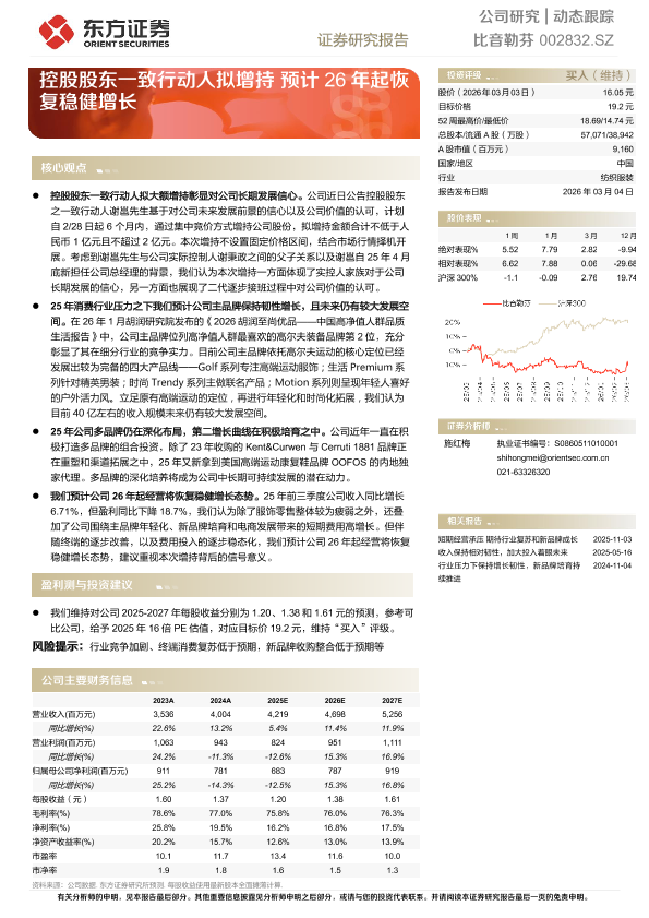 【东方证券】【202603】控股股东一致行动人拟增持预计26年起恢复稳健增长-5页