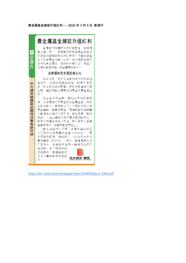【光大证券(国际)】【202603】贵金属基金捕捉升值红利-1页