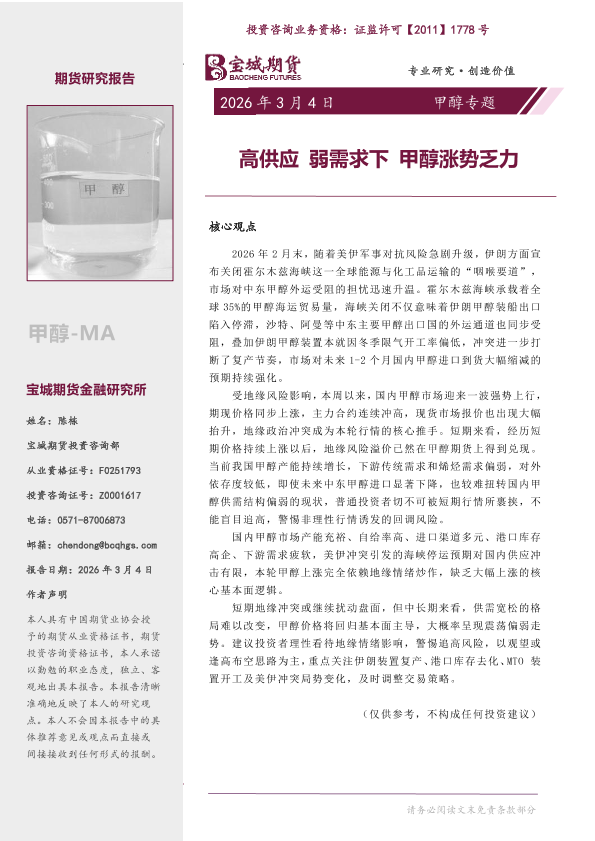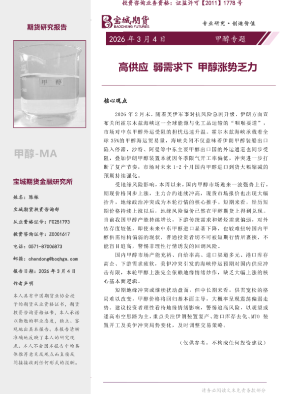 【宝城期货】【202603】高供应弱需求下甲醇涨势乏力-11页