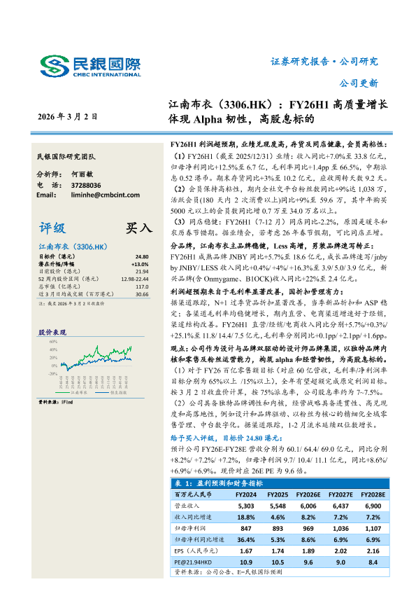 【民银国际】【202603】江南布衣(3306.HK):FY26H1高质量增长体现Alpha韧性,高股息标的-7页