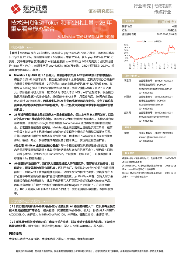 【东方证券】【202603】从 MiniMax 首份财报看 AI 产业趋势 技术迭代推动 Token 和商业化上量 26 年重点看全模态融合-3页