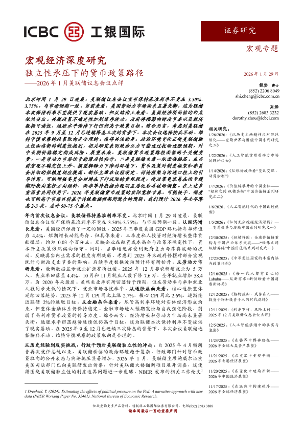 【工银国际证券有限公司】【202601】独立性承压下的货币政策路径——2026年1月美联储议息会议点评-5页