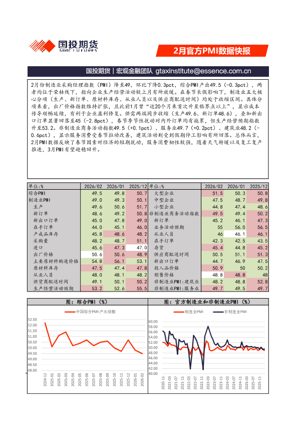 【国投期货】【202602】2月官方PMI数据快报-2页