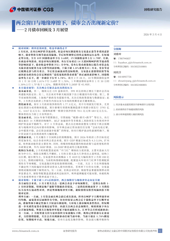 【银河证券】【202603】两会窗口与地缘摩擦下,债市会否出现新定价?——2月债市回顾及3月展望-18页