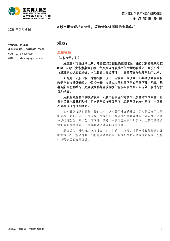 【英大证券】【202603】A股市场表现相对韧性,等待错杀优质股的布局良机-4页