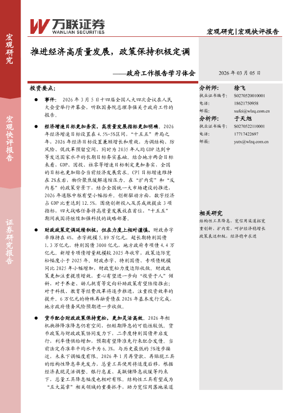 【万联证券】【202603】推进经济高质量发展,政策保持积极定调-3页