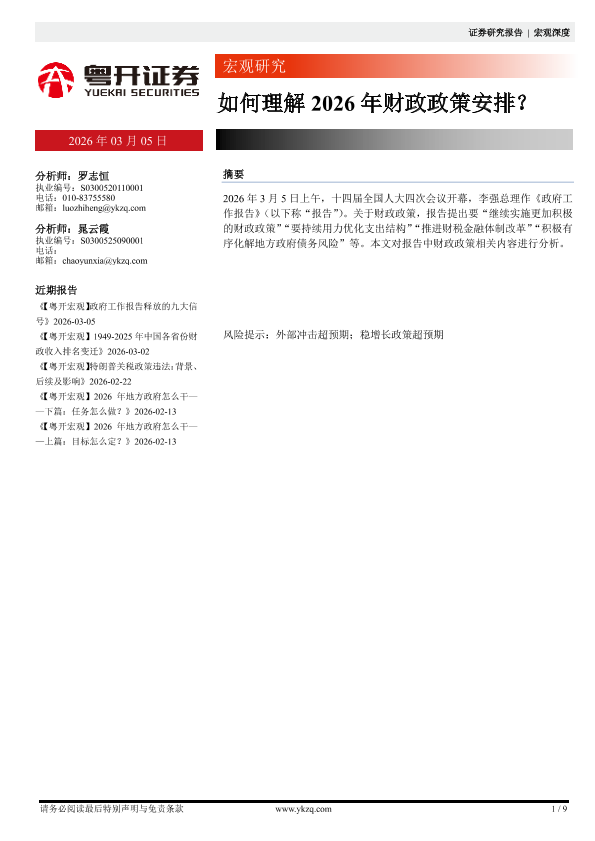 【粤开证券】【202603】如何理解2026年财政政策安排?-9页