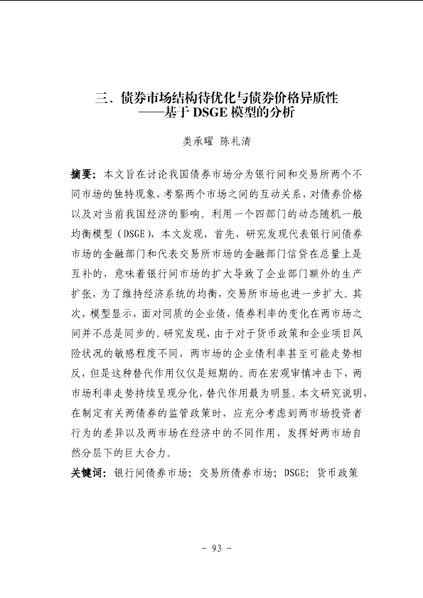 DSGE模型 债券市场 宏观审慎管理 货币政策 金融市场结构