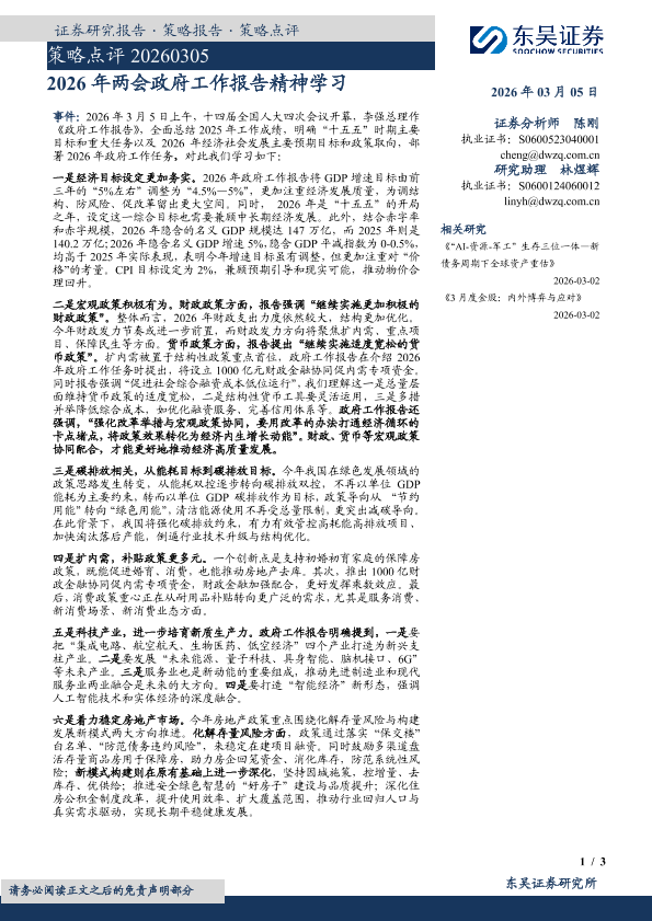 【东吴证券】【202603】策略点评 20260305 2026年两会政府工作报告精神学习-3页