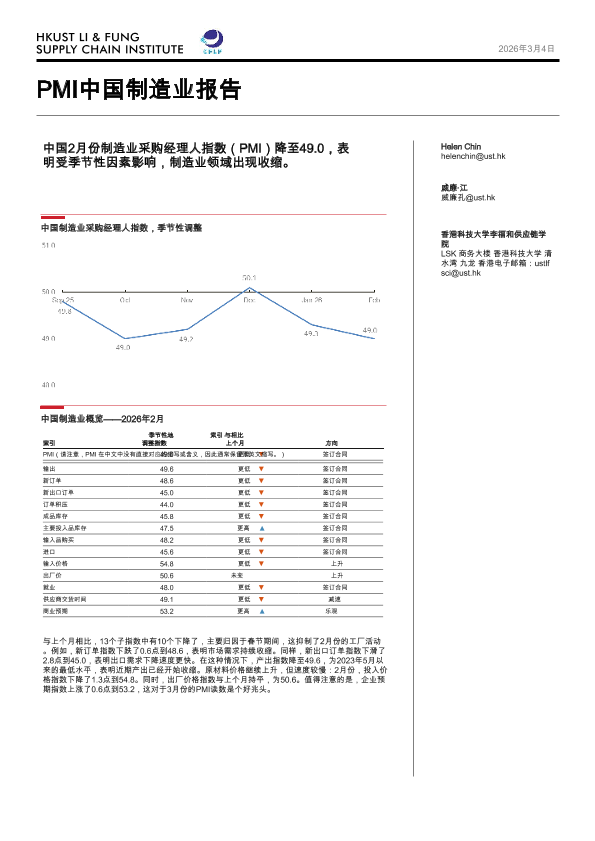 【中国物流与采购联合会&香港科技大学李锦记供应链学院】【202603】PMI中国制造业报告-5页