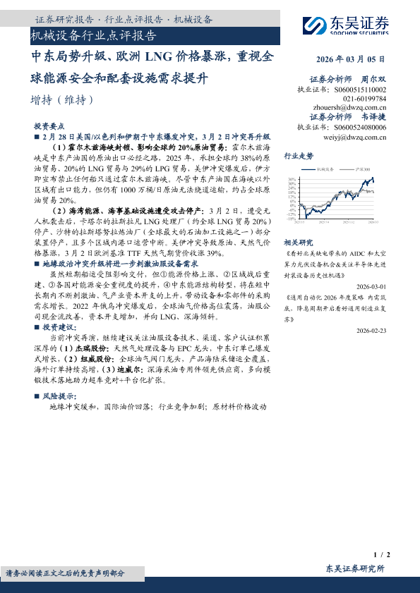 【东吴证券】【202603】中东局势升级、欧洲LNG价格暴涨,重视全球能源安全和配套设施需求提升-2页
