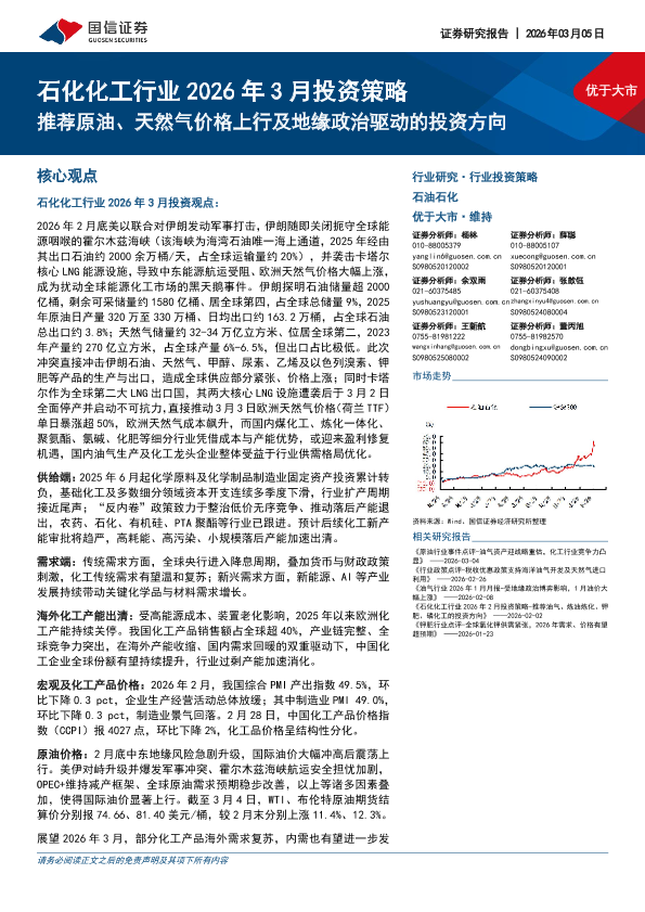 【国信证券】【202603】石化化工行业2026年3月投资策略:推荐原油、天然气价格上行及地缘政治驱动的投资方向-31页