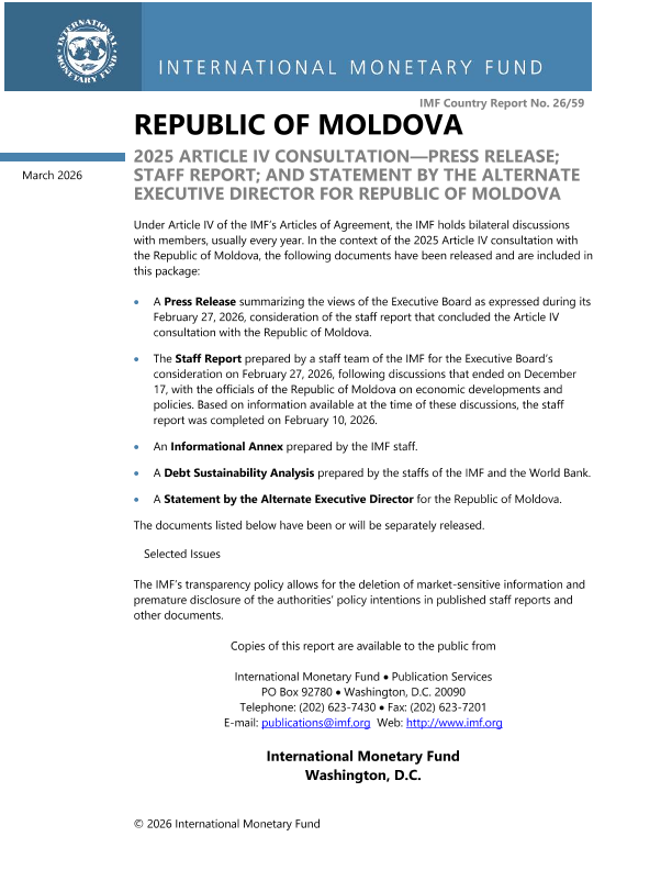 【国际货币基金组织】【202603】Republic of Moldova 2025 Article IV Consultation-Press Release; Staff Report; and Statement by the Alternate Executive Director for Republic of Moldova-100页