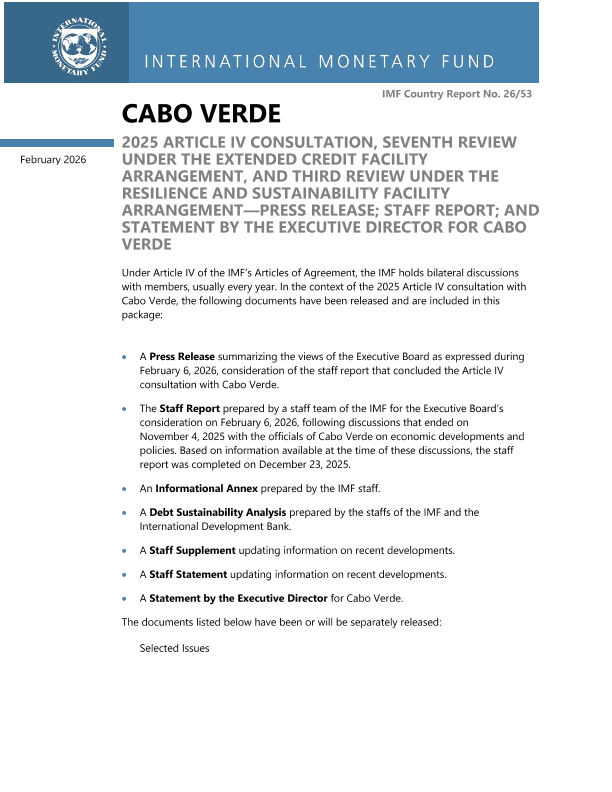 【国际货币基金组织】【20260226】Cabo Verde Country Report 2025 Article IV Consultation, Seventh Review Under the Extended Credit Facility Arrangement, and Third Review Under the Resilience and Sustainability Facility Arrangement-168页