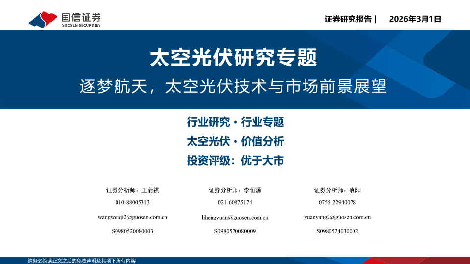 【国信证券】【202603】逐梦航天,太空光伏技术与市场前景展望-38页