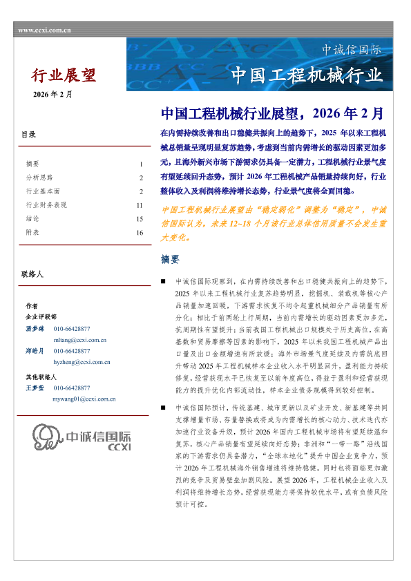 【中诚信国际CCXI】【202602】中国工程机械行业展望,2026年 2月-18页