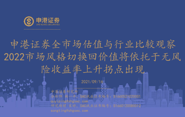 【申港证券】【20210916】全市场估值与行业比较观察:2022市场风格切换回价值将依托于无风险收益率上升拐点出现-33页