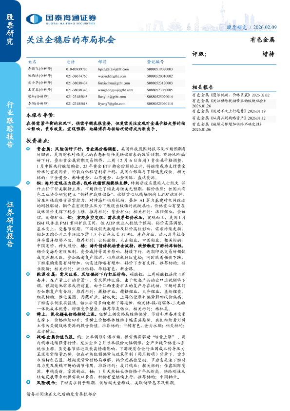 【国泰海通证券】【202602】有色金属行业:关注企稳后的布局机会-15页