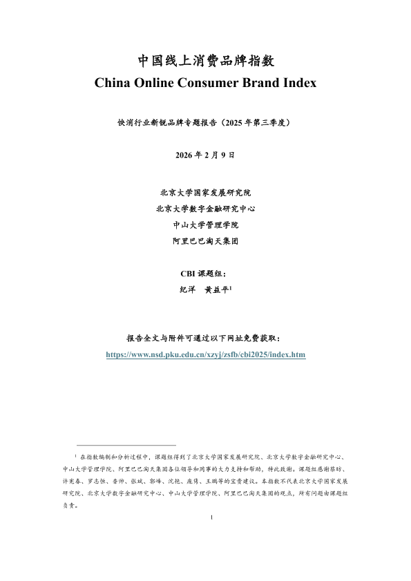 【北京大学国家发展研究院&北京大学数字金融研究中心&中山大学管理学院&阿里巴巴淘天集团】【202602】中国线上消费品牌指数—快消行业新锐品牌专题报告(2025年第三季度)-10页