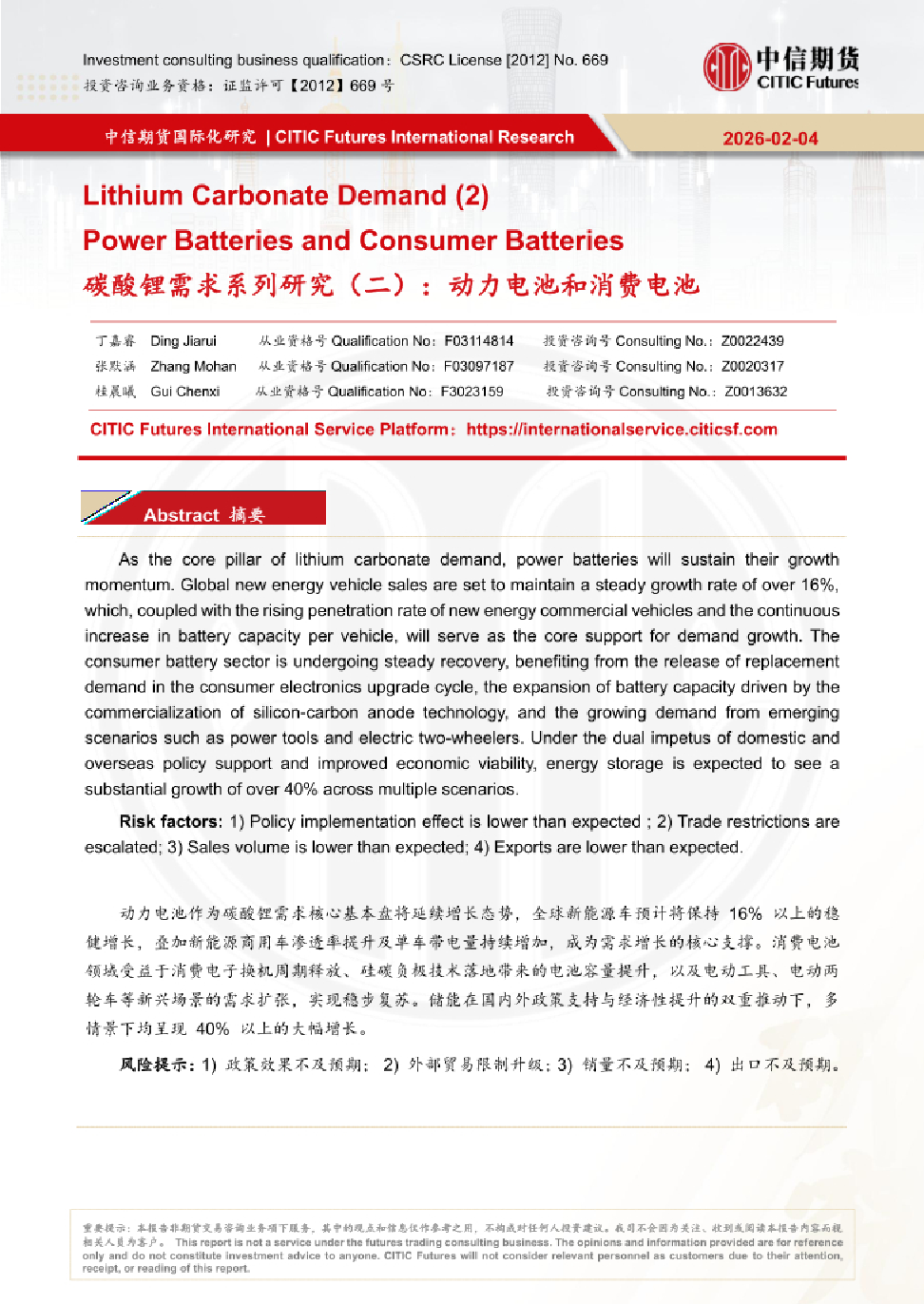 【CITIC Futures】【202602】碳酸锂需求系列研究(二):动力电池和消费电池-30页