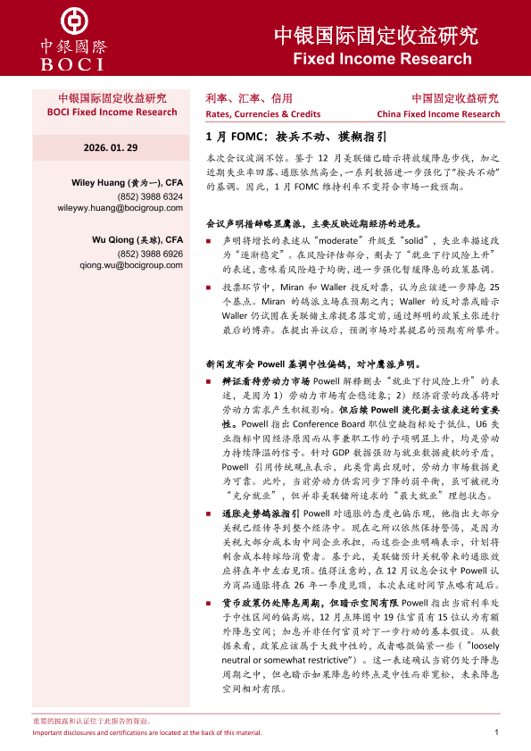 【中银证券】【202601】1月FOMC:按兵不动、模糊指引-4页