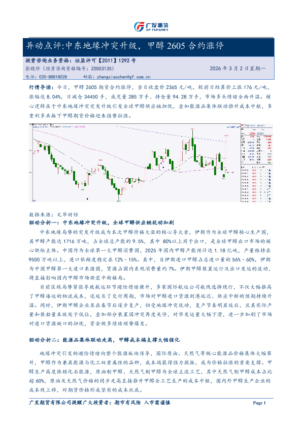 【广发期货】【202603】异动点评 中东地缘冲突升级,甲醇 2605合约涨停-3页