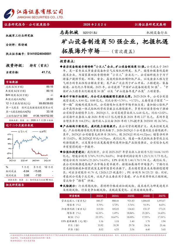 【江海证券】【202601】矿山设备制造商50强企业_把握机遇拓展海外市场-30页
