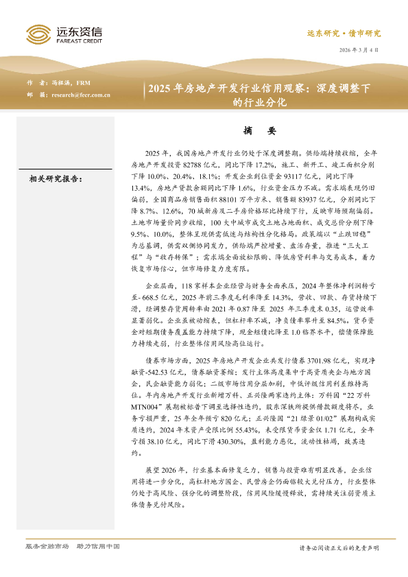 【远东资信】【202603】2025年房地产开发行业信用观察:深度调整下的行业分化-11页