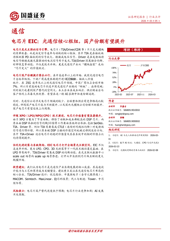 【国盛证券】【202503】电芯片EIC_光通信核心枢纽_国产份额有望提升-2页