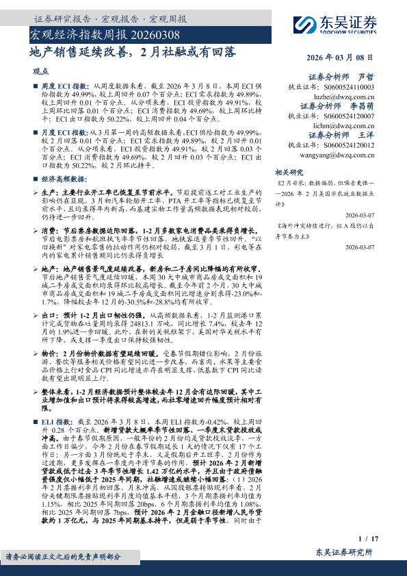 【东吴证券】【202603】宏观经济指数周报 20260308-17页