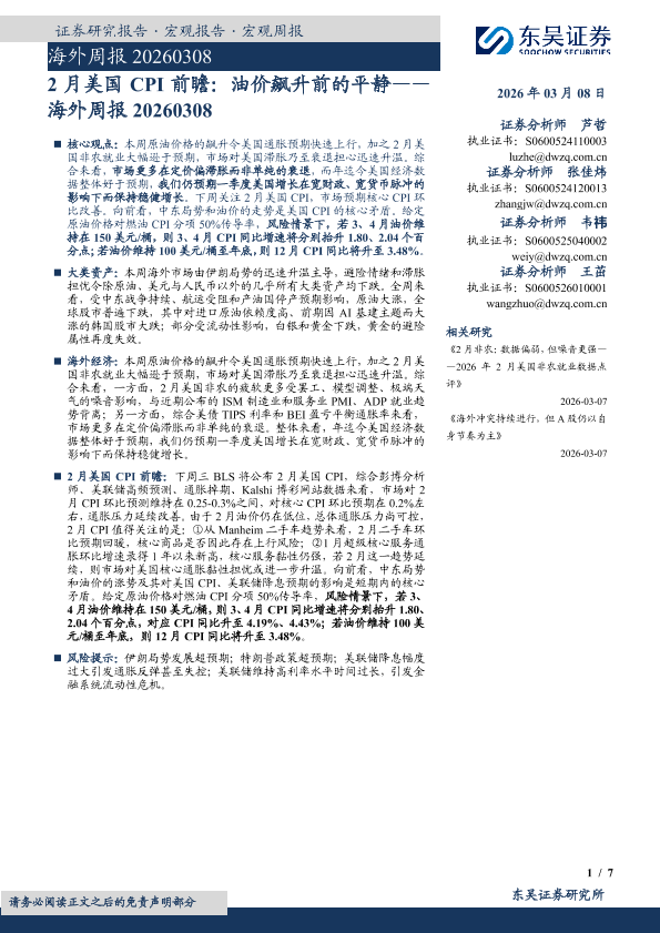 【东吴证券】【202603】海外周报 20260308 2月美国 CPI前瞻:油价飙升前的平静-7页