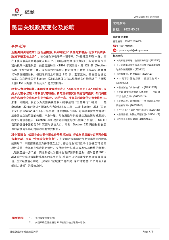 【五矿证券】【202603】美国关税政策变化及影响-9页