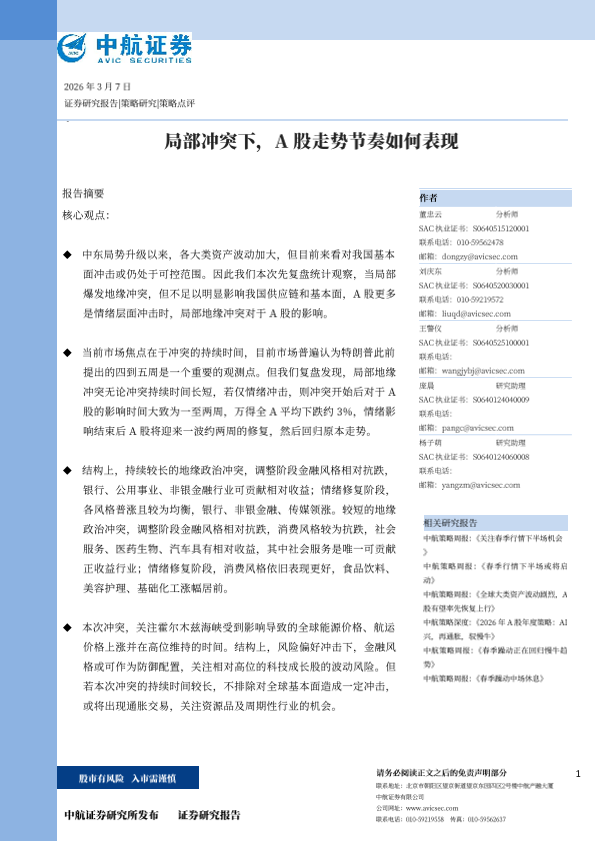 【中航证券】【202603】局部冲突下,A股走势节奏如何表现-9页