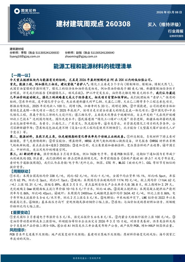 【国金证券】【202603】2026-03-09_国金证券_建材建筑周观点:能源工程和能源材料的梳理清单-18页