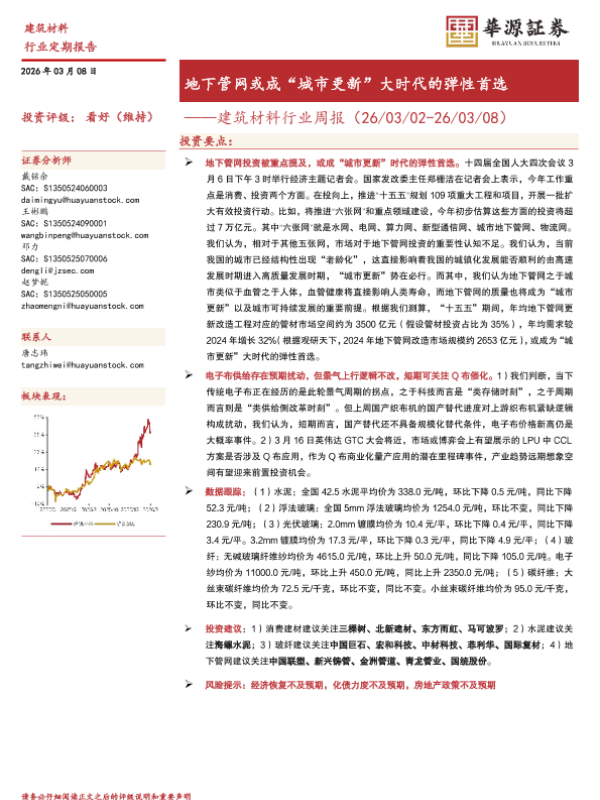 投资机会 城市更新 建筑材料 行业分析 地下管网