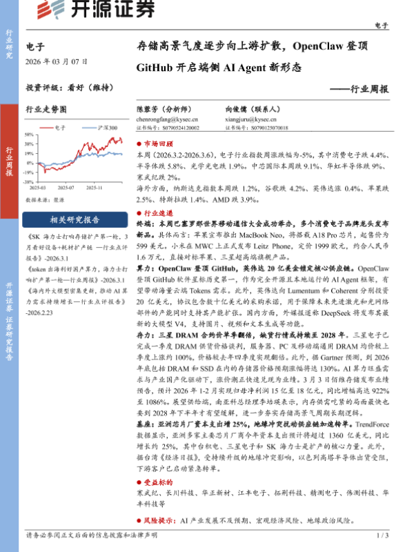 【开源证券】【202603】存储高景气度逐步向上游扩散,OpenClaw登顶GitHub开启端侧AI Agent新形态-3页