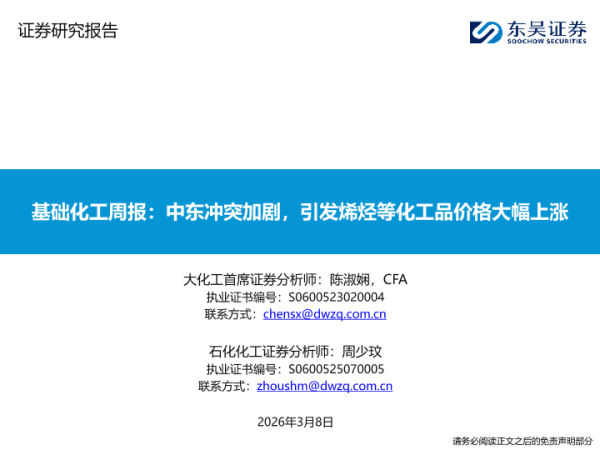 【东吴证券】【202603】基础化工周报:中东冲突加剧,引发烯烃等化工品价格大幅上涨-20页