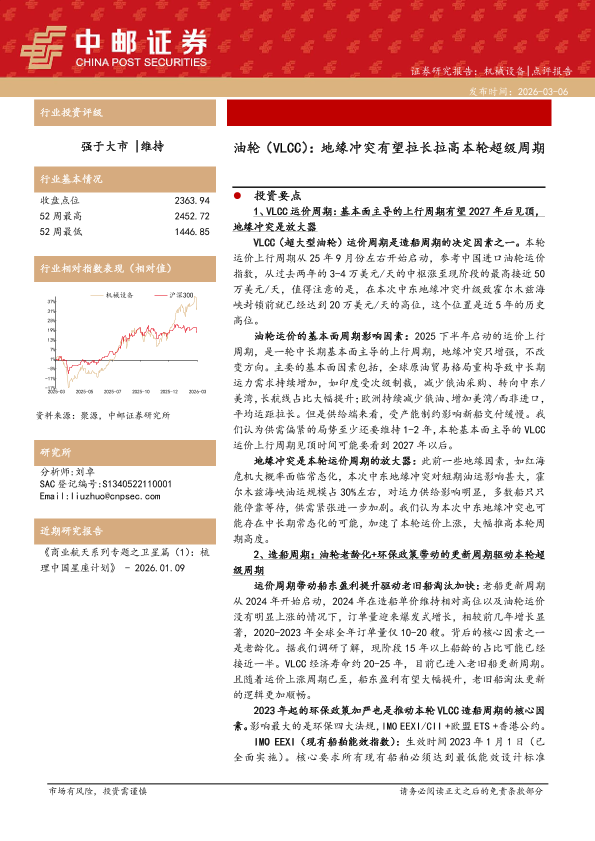 【中邮证券】【202603】油轮(VLCC):地缘冲突有望拉长拉高本轮超级周期-5页