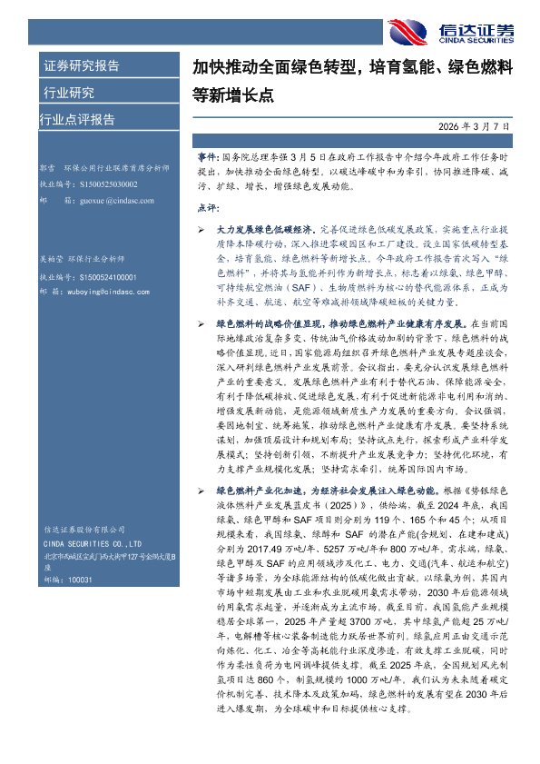 【信达证券】【202603】加快推动全面绿色转型,培育氢能、绿色燃料等新增长点-4页
