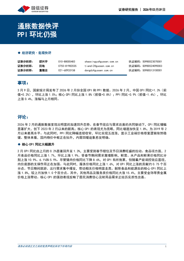 【国信证券】【202602】通胀数据快评PP I环比仍强-5页