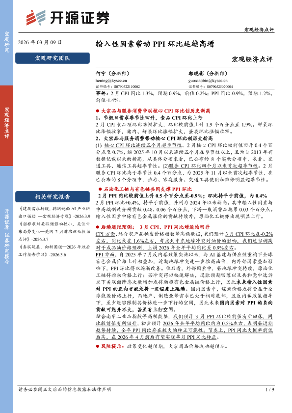 【开源证券】【202603】宏观经济点评:输入性因素带动PPI环比延续高增-9页