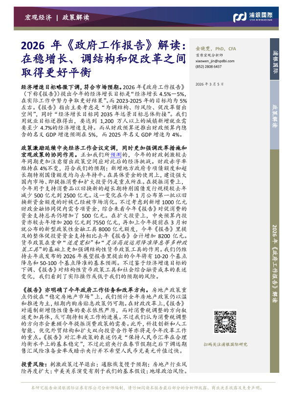 【浦银国际】【202603】2026年《政府工作报告》解读:在稳增长、调结构和促改革之间取得更好平衡-10页