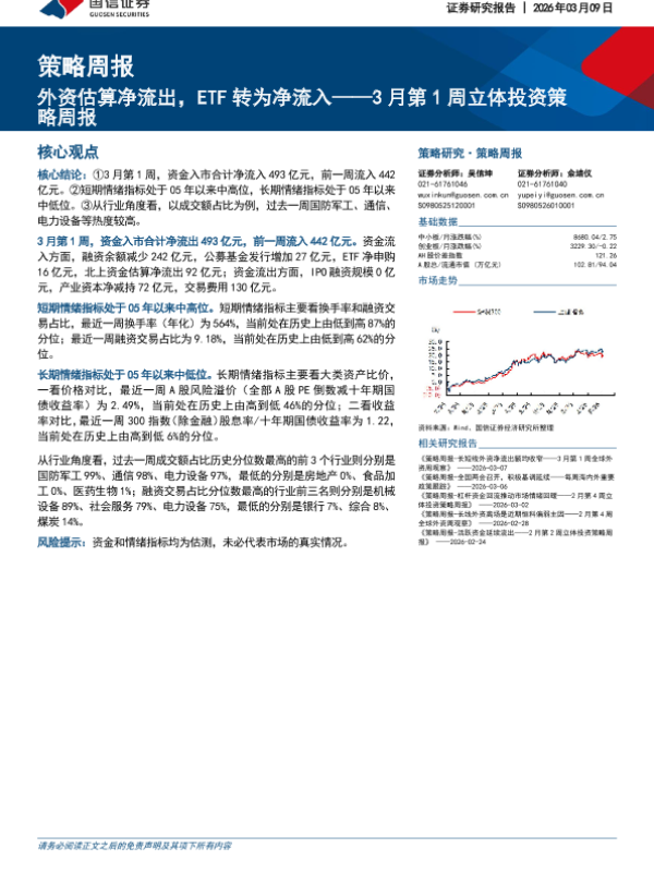 【国信证券】【202603】3月第1周立体投资策略周报:外资估算净流出,ETF转为净流入-10页