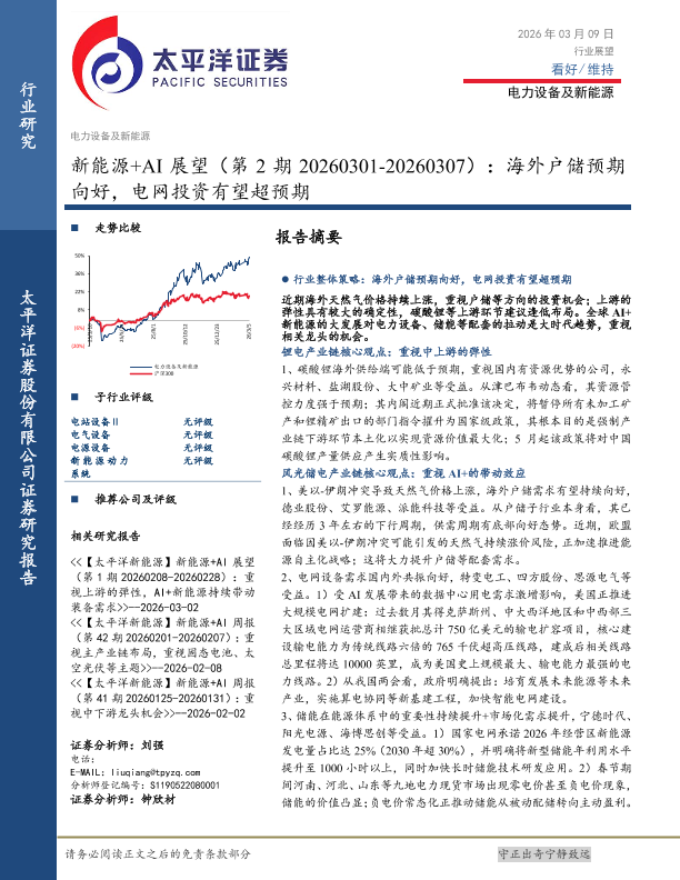 【太平洋证券】【202603】电力设备及新能源:新能源+AI展望(第2期):海外户储预期向好,电网投资有望超预期-15页