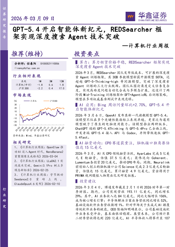 【华鑫证券】【202603】GPT-5.4开启智能体新纪元,REDSearcher框架实现深度搜索 Agent技术突破-18页