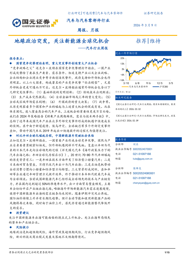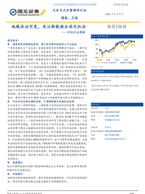 【国元证券】【202603】地缘政治突发,关注新能源全球化机会——汽车行业周报-15页