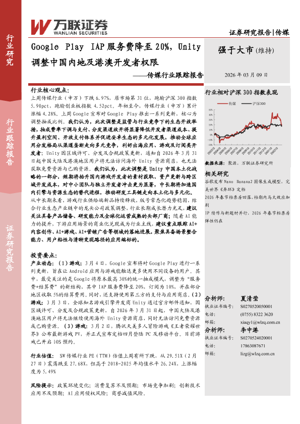【万联证券】【202603】Google Play IAP服务费降至 20%,Unity 调整中国内地及港澳开发者权限-6页