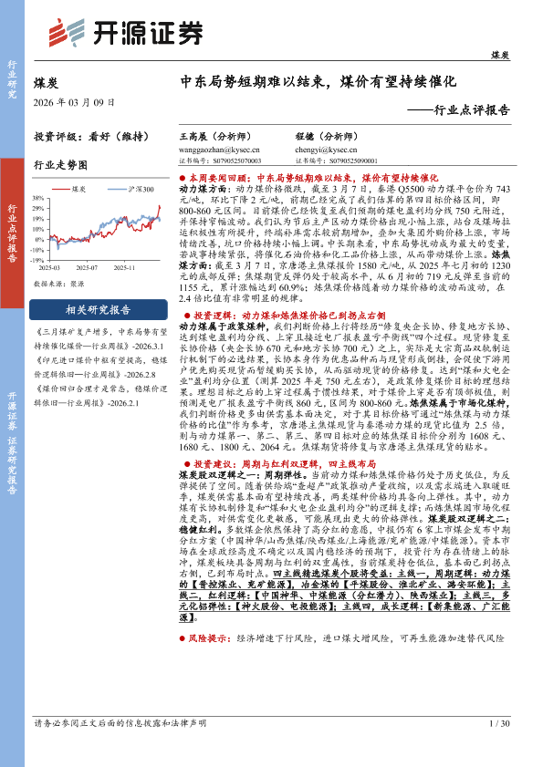 【开源证券】【202603】中东局势短期难以结束,煤价有望持续催化-30页