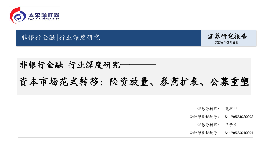 【太平洋证券】【202603】非银行金融行业深度研究————资本市场范式转移:险资放量、券商扩表、公募重塑-37页