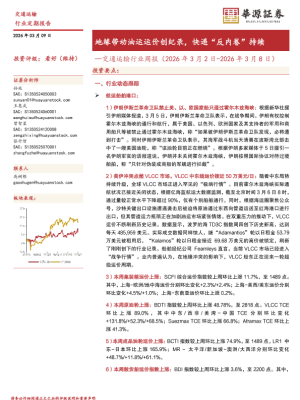 【华源证券】【202603】地缘带动油运运价创纪录,快递“反内卷”持续-17页